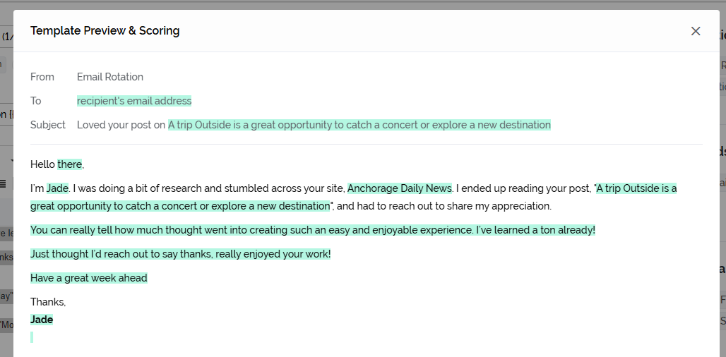 I’m {{OUTREACH_EMAIL_ACCOUNT_FROM_NAME}}. I was doing a bit of research and stumbled across your site, {{MRG_BLOG_NAME}}. I ended up reading your post, "{{MRG_RECENT_BLOG_POST}}", and had to reach out to share my appreciation.
