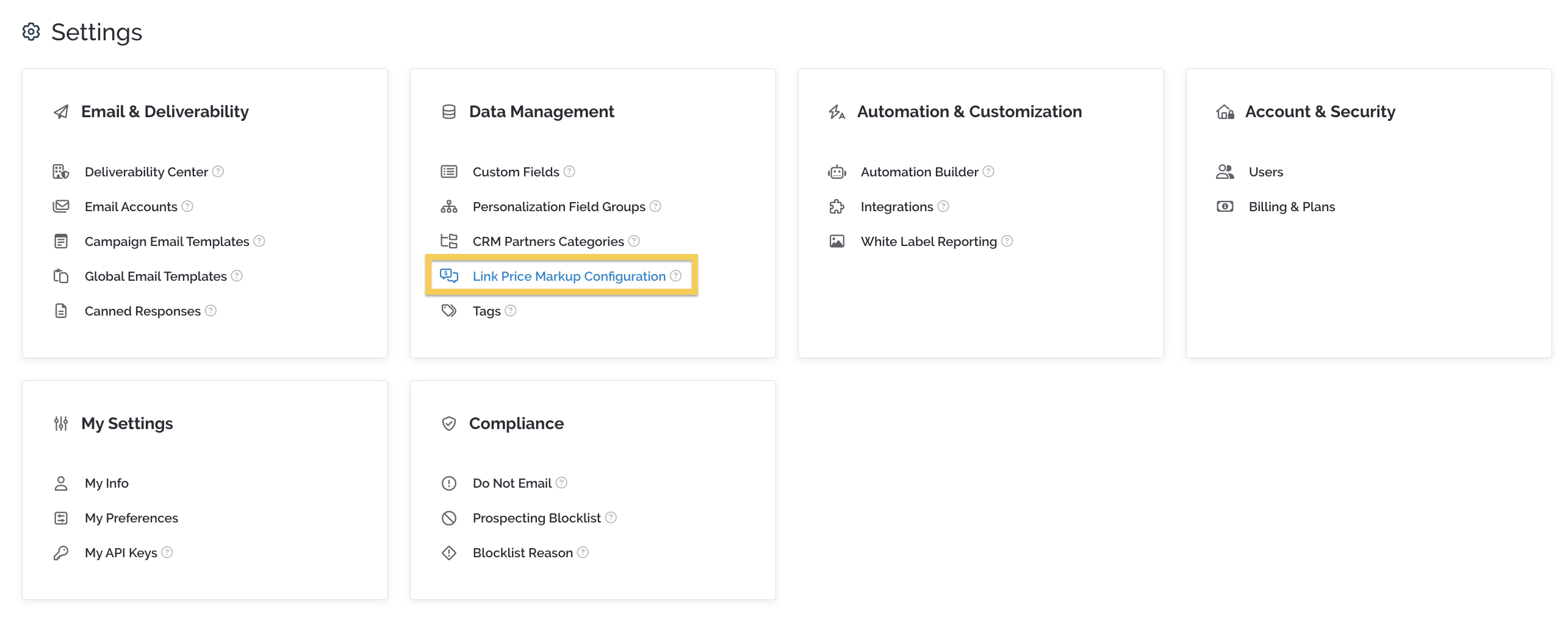 You can find your Link Price Markup Configuration from the Settings page.